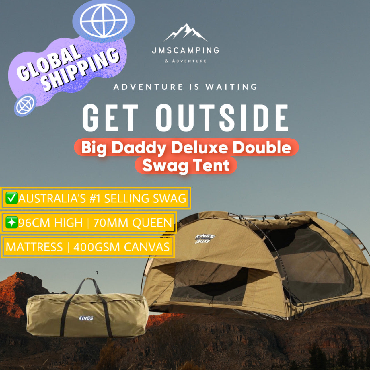 Kings Big Daddy Deluxe Double Swag Tent + 100mm Foam Self Inflating Queen Mattress