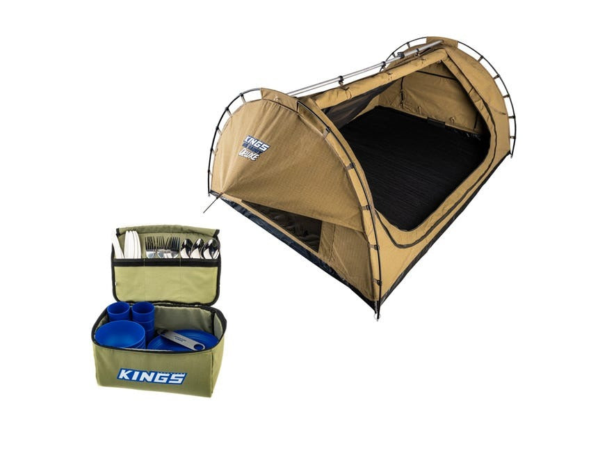 Adventure Kings Big Daddy Deluxe Double Swag Tent + 37 Piece Picnic Cutlery Set