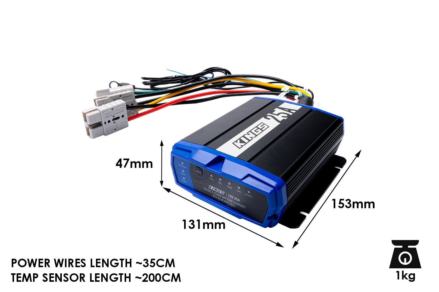 Kings 25A DCDC Charger | Quick Connect Plugs | MPPT Solar Regulator| Lithium Compatible | 12/24V Input | IP66 Rating