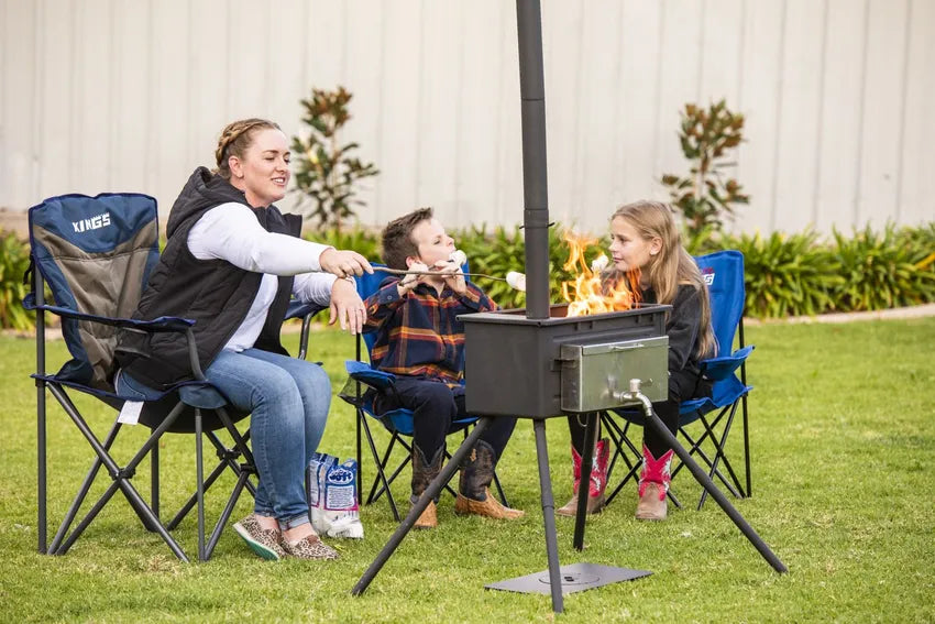 Introducing the incredible Adventure Kings Premium Camp Oven Stove – your new best mate for delicious BBQ or campsite cooking, and warm, cosy fires, whether you’re at your favourite campsite or in the backyard!