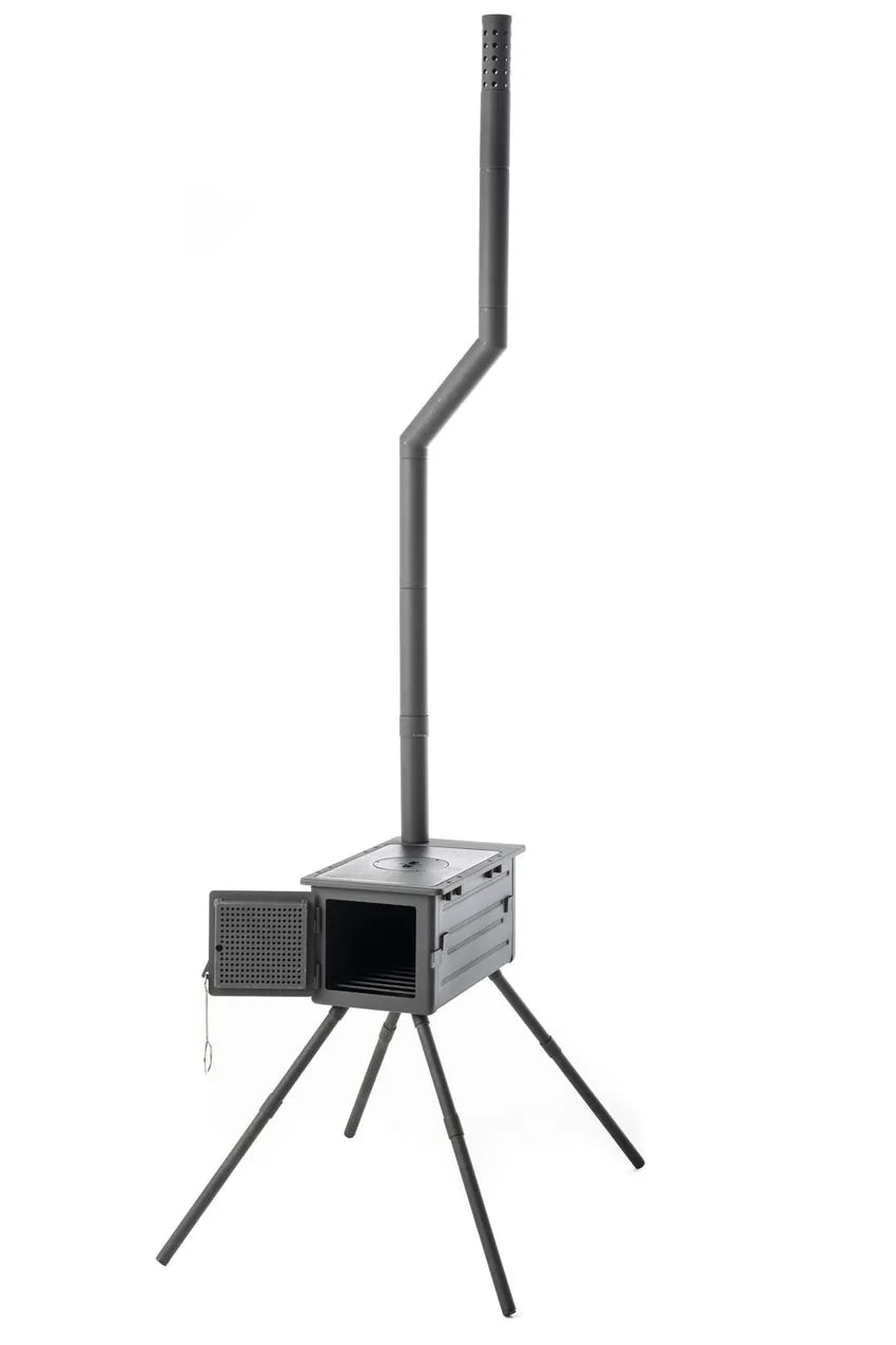 The chimney extends over 2.4 metres off the ground, to direct smoke away from your campsite, for smoke-free campfires! You can even position the Premium Camp Oven Stove under your awning, your gazebo or your shed for maximum warmth, and the angular offset chimney piece lets the smoke funnel away, instead of getting trapped underneath.